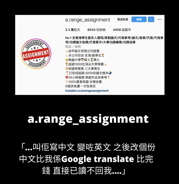 「...叫佢寫中文 變咗英文 之後改個份中文比我係Google translate 比完錢 直接已讀不回我....」